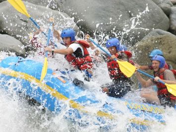 This trip gives you the ultimate blend of wilderness exposure and excitement. Rio Pacuare is world famous for its pristine beauty. Being a true river gorge it is flanked by step green walls. Waterfalls cascade into the river from both sides as colorful, tropical birds fly over your head. The wildlife is abundant, with sloths, toucans, parrots, coatis, butterflies and colorful frogs being common sights. The white water is equally exciting; the amount of rapids covered on this outstanding descend makes it a most memorable river trip.